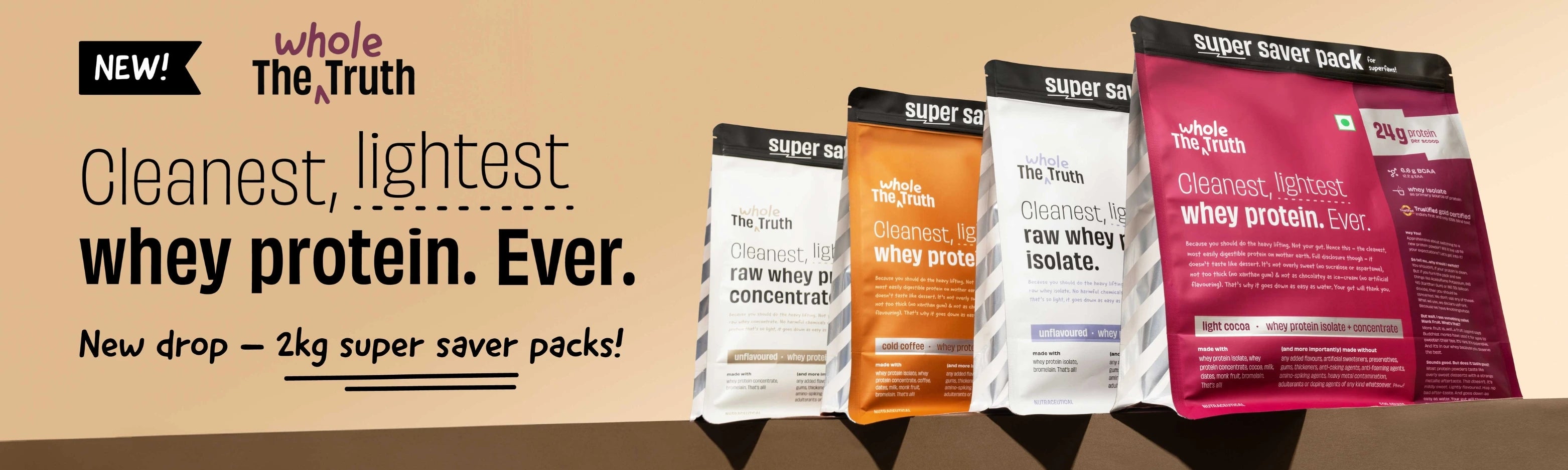 The Whole Truth Whey Protein Isolate + Concentrate – 2Kg (Pack of 2 x 1Kg, Cold Coffee Flavour, 24g Protein per Serving)