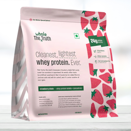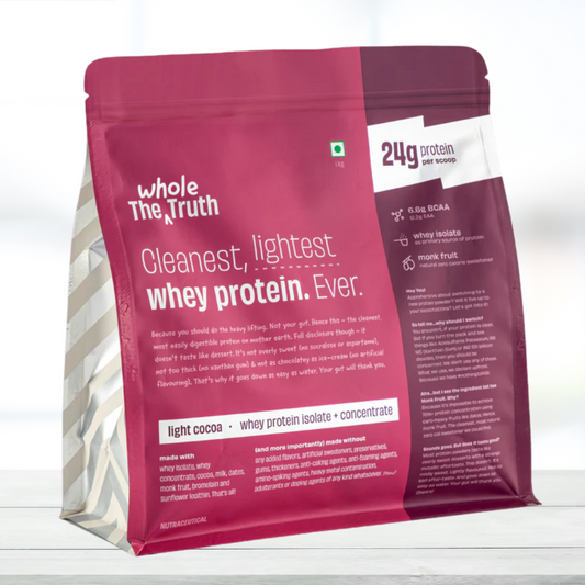 The Whole Truth Whey Protein Isolate + Concentrate 1Kg – 24g Protein per Serving, Light Cocoa Flavor, Muscle Recovery & Weight Management