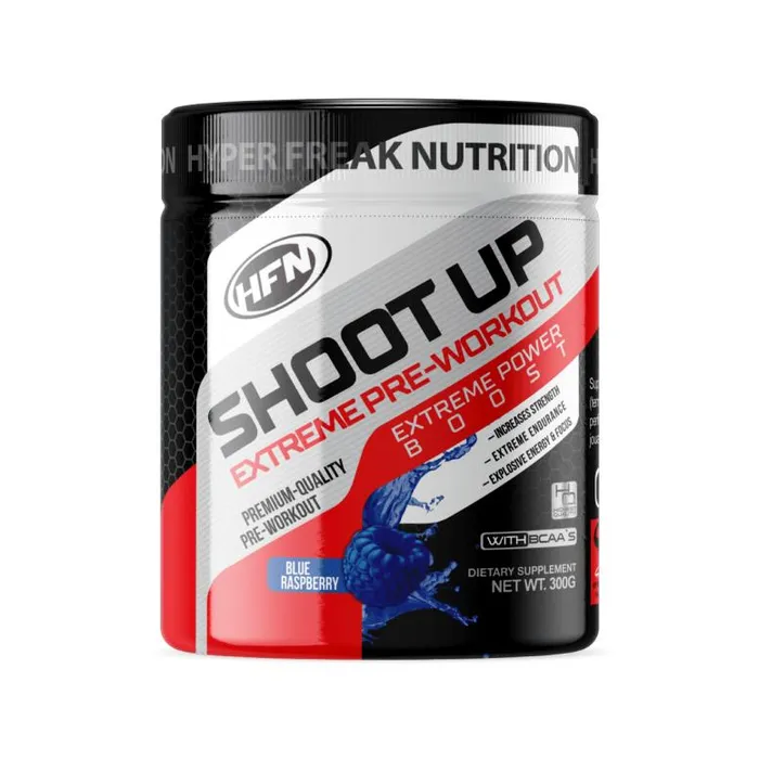 Power through your workouts with HFN Shoot Up Extreme Pre-Workout Powder. Packed with premium ingredients to enhance energy, focus, and endurance, this 300g pre-workout supplement is perfect for athletes and fitness enthusiasts. It is an official product with maximum potency for peak performance. Available now at an affordable MRP.