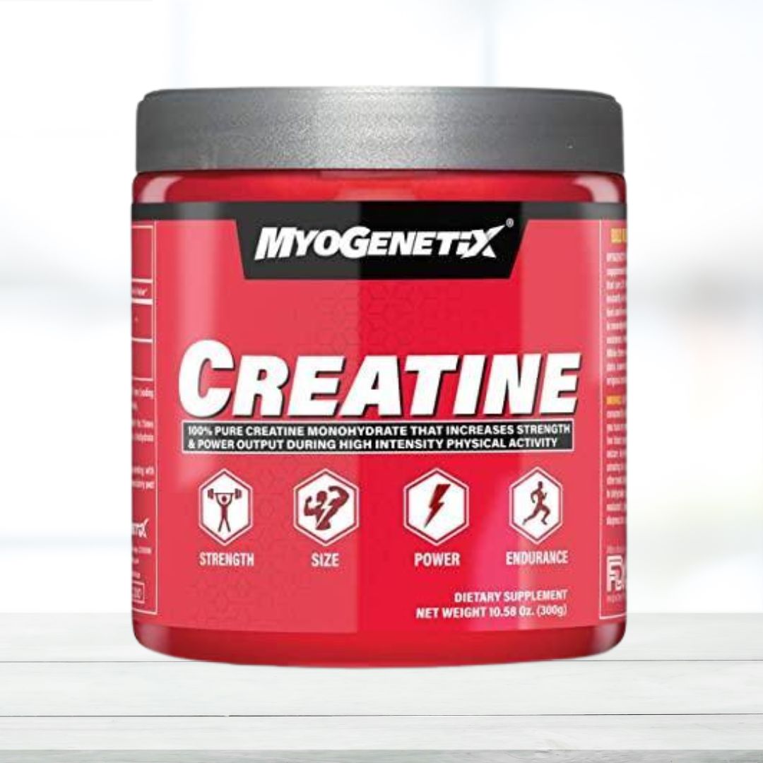 Fuel your fitness goals with Myogenetix Creatine, a premium-quality supplement designed to enhance performance, strength, and muscle recovery. Each 300g pack provides 100 servings of pure creatine monohydrate, ensuring exceptional value and sustained support for your workout regimen.