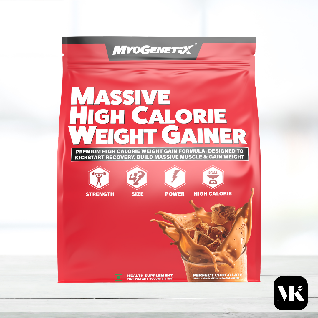 Gain size and strength with MYOGENETIX Massive High-Calorie Weight Gainer. Each serving delivers a balanced blend of premium protein, complex carbs, and essential nutrients to support muscle growth and recovery. Designed for athletes and hard gainers, this 6 lbs formula provides sustained energy and optimal calorie intake. Delicious Perfect Chocolate flavor. No banned substances. FSSAI-approved. Ideal for post-workout recovery and muscle building.